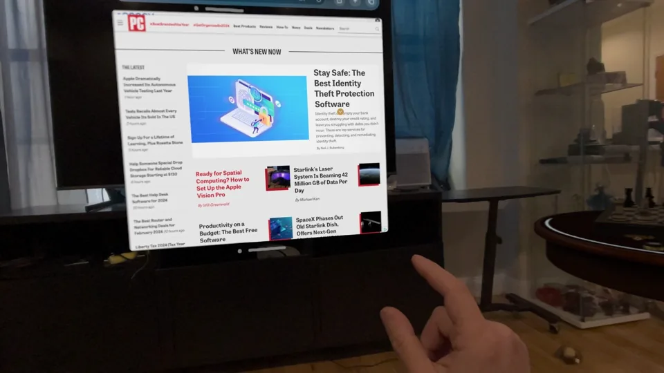 من چند روز از هدست اپل ویژن پرو استفاده کردم و هر بار که آن را میگذاشتم، استفاده از آن برایم راحتتر میشد. عادت کردن به سیستم کنترل چند دقیقه طول کشید و بعد از آن با آن پنجره ها را جابجا می کردم، شطرنج بازی می کردم و ویدیو تماشا می کردم. علیرغم چند مشکل و نداشتن برخی نرم افزارها، visionOS حتی هنگام اجرای معیارها نسبتاً پایدار بود و خلأهای پشتیبانی از برنامه های شخص ثالث برای Twitch، یوتیوب و اکثر خدمات گوگل، راه حل های ساده ای از طریق صفحات دسکتاپ آنها در سافاری داشت.